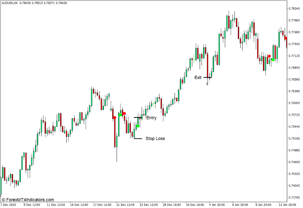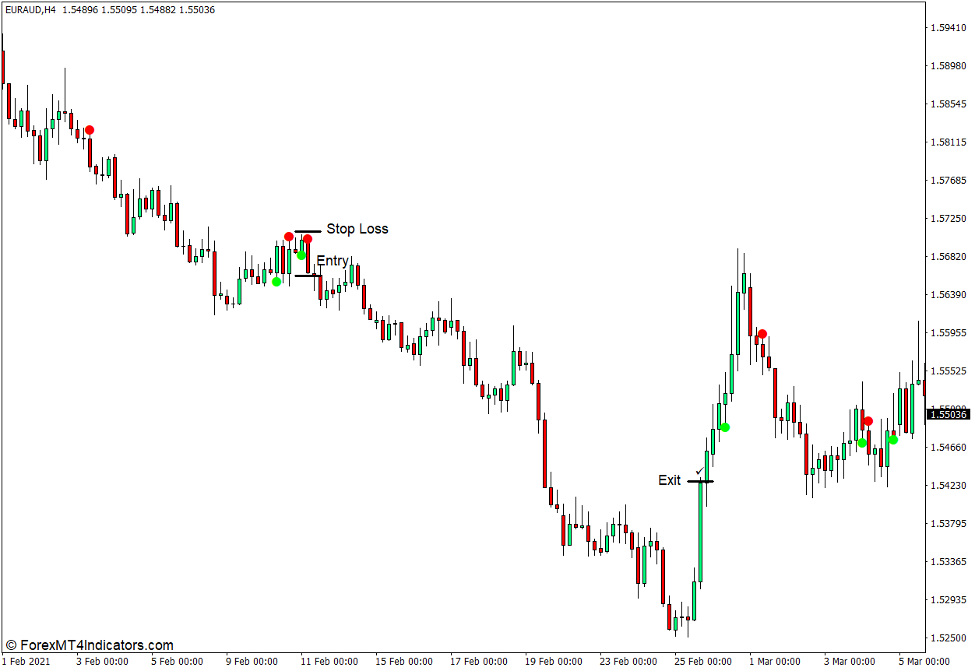 ตัวบ่งชี้นี้แปลงจุดเพื่อบ่งชี้แนวโน้มหรือการกลับตัวของโมเมนตัม มันวางแผนจุดมะนาวด้านล่างการเคลื่อนไหวของราคาเพื่อบ่งชี้การกลับตัวของรั้นที่เป็นไปได้ ในทางกลับกัน มันยังแสดงจุดสีแดงเหนือการเคลื่อนไหวของราคาเพื่อบ่งชี้ถึงการกลับตัวของตลาดหมี